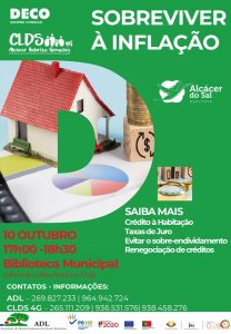 No próximo dia 10 de outubro a ADL irá realizar, em parceria com a DECO – Associação Portuguesa para a Defesa do Consumidor, uma sessão de sensibilização sobre como “Sobreviver à Inflação” que terá lugar às 16:00 horas no Auditório da Biblioteca Municipal de Alcácer do Sal. Esta é uma atividade enquadrada no Plano de Ação do CLDS 4G “Alcácer Valoriza Gerações”, projeto coordenado pela ADL, em parceria com o Município de Alcácer do Sal.
