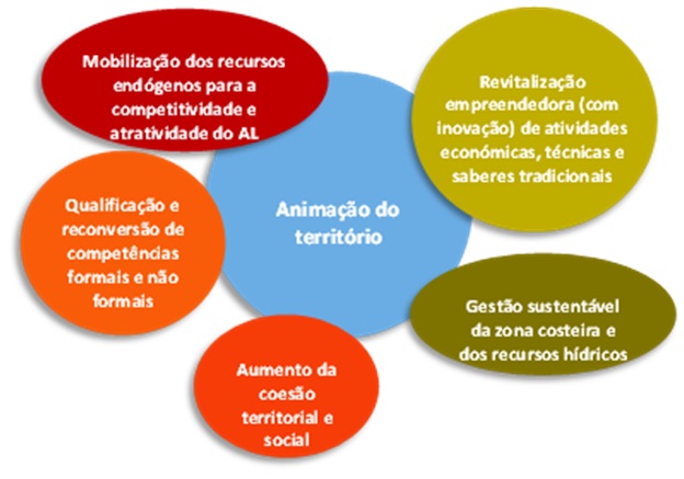 A ADL tem como objetivo implementar uma Estratégia de Desenvolvimento Local (EDL) para a dinamização das zonas costeiras do seu território de intervenção, que tem como principais eixos de atuação: